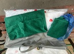 Басқалары: Прочее: Полотенце зеленого цвета 2 шт, одеяло TANGALE белый с сердечками 2 шт.